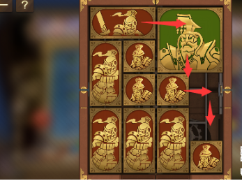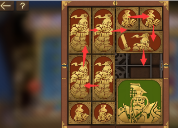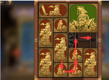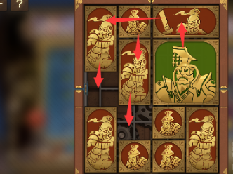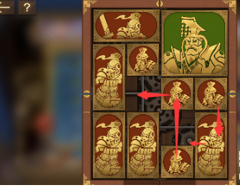 3、中间的正方形向左移动,下方的正方形向上移动,右下角的长方形向左移动,将军下方的正方形向下移动到底。