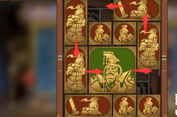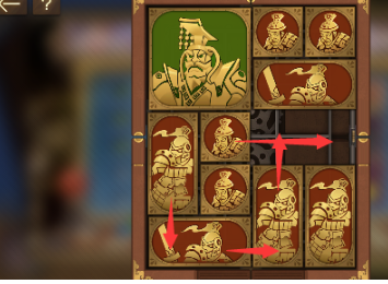 3、中间的正方形向右移动到底,左下角右数第二个长方形向上移动,左下角的长方形向右移动,将军下方的长方形向下移动。