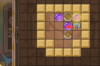 4、往右走一格将最右边的珠子向上推到凹槽内。