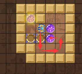 3、然后走到下方在凹槽里的珠子下方向上顶一下这个珠子,然后向左上移动将左侧的珠子顶进上方的凹槽。