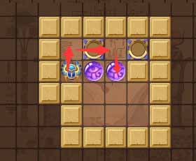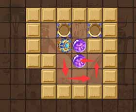 1、向上走到右侧的珠子上方向下顶一格珠子。