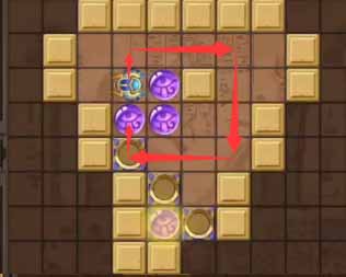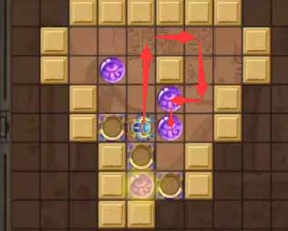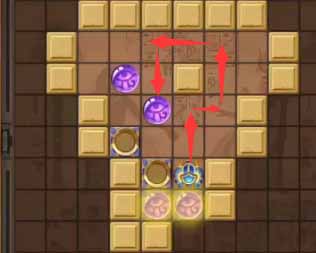5、然后将下方左侧的珠子向上顶一格,将其右侧的珠子向右再顶一格。