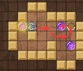 2、绕到下方的珠子下方向上顶一格,然后向右将右侧的珠子顶到最右边。