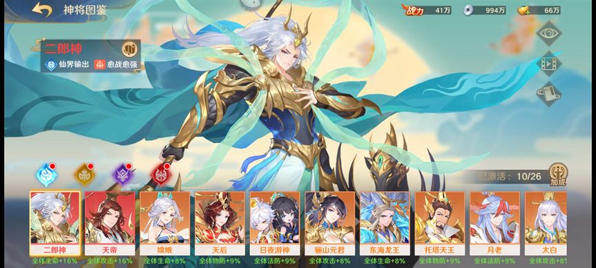 2号位二郎神释放群体伤害,并为后排的嫦娥附加伤害加层;
