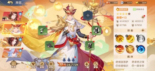 这是圣界的阵容,毗蓝婆的第一轮攻击,就是为了积累连击点。2号位的小白龙攻防兼备,三号位沙悟净负责吸引火力,保护后排,沙悟净也可以配合连击来弥补伤害;4、5号位弥勒佛和猪八戒,一边输出,一边给队伍加BUFF,6号位主角收割生命。