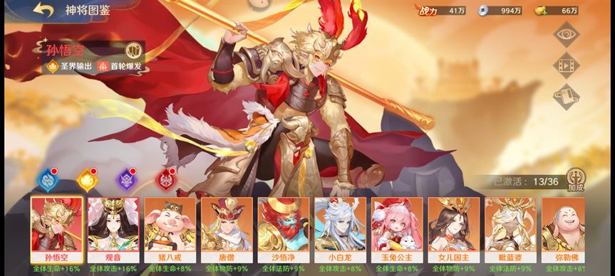 3号位猪八戒为全体加Buff,回复孙悟空连击点;