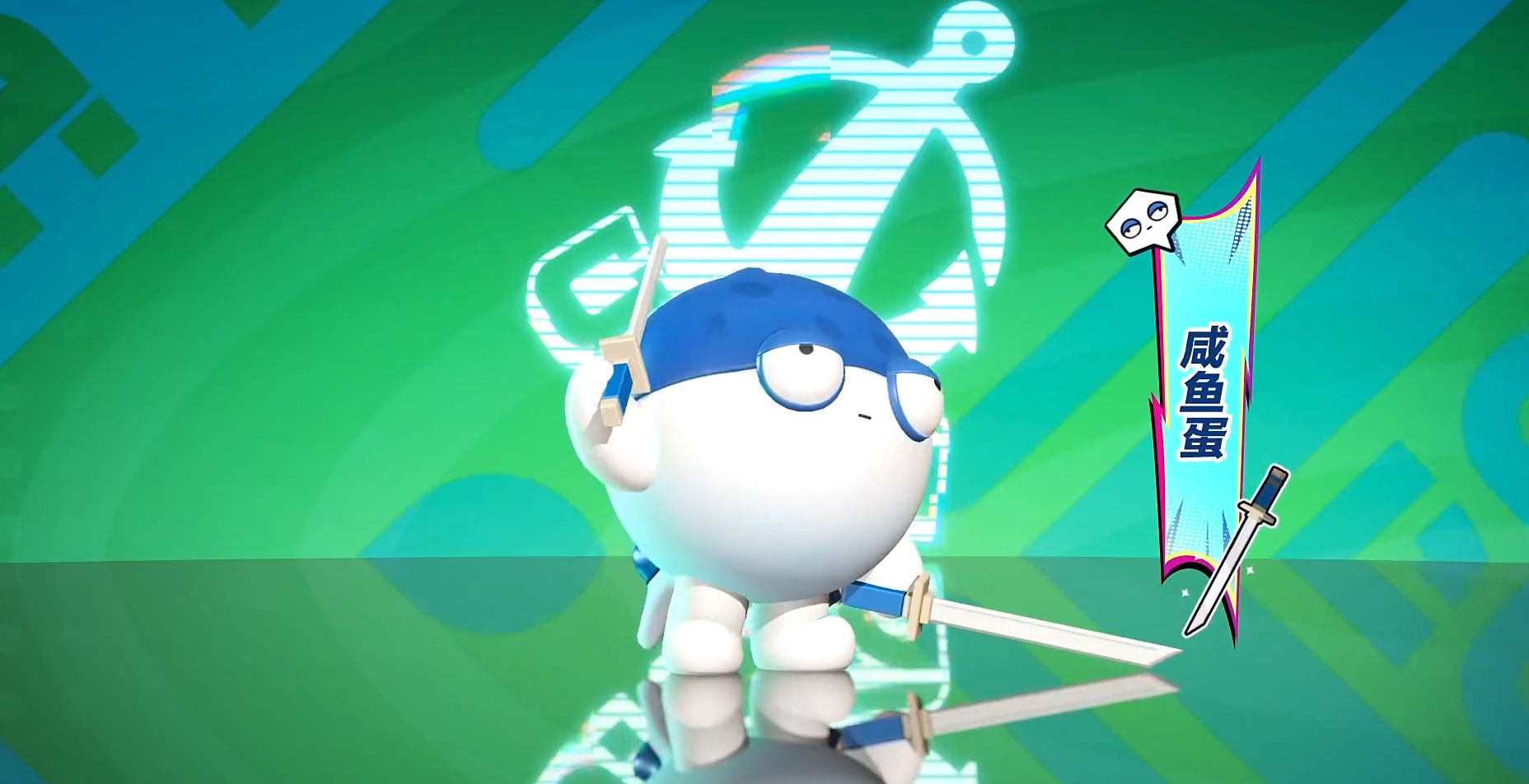 一技能【咸鱼单刀】:咸鱼蛋进入飞行状态,朝指定方向投掷自身,期间处于不可选中状态;抵达落点或碰撞敌方单位时立即终止位移并恢复形态,同时对范围内目标造成物理伤害。该技能兼具突进与规避双重功能,是发起先手或调整站位的关键手段。