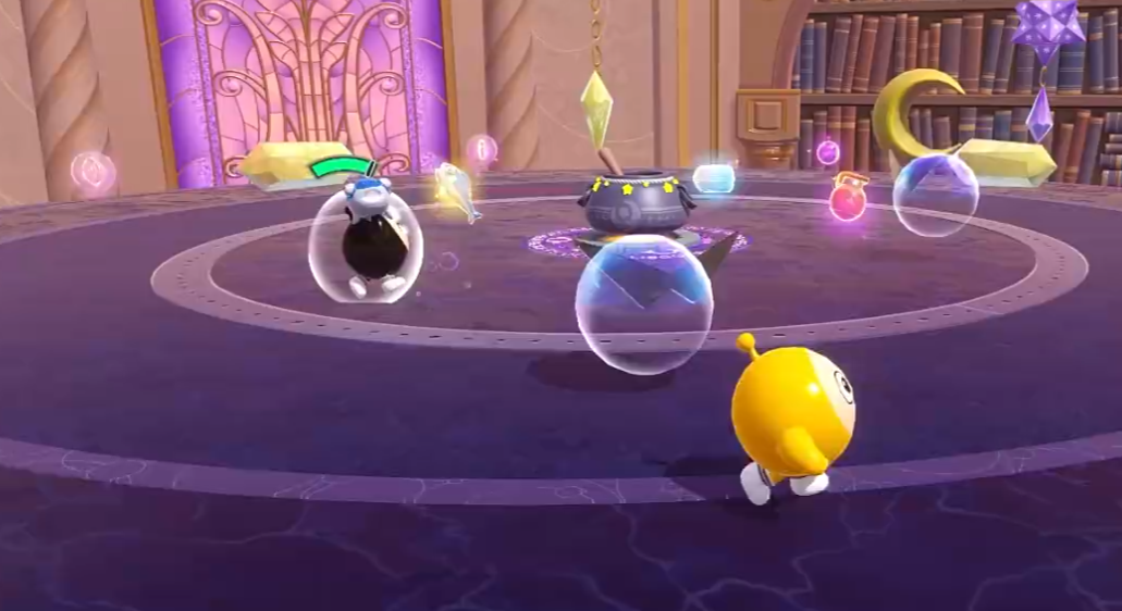 在“魔法的坩埚”中,中央的巨大坩埚会周期性向四周发射魔法弹,落地后随机生成追逐玩家的动态机关。面对这种不可预测的威胁,灵活走位成为生存的关键,稍有不慎便可能陷入连续受击的困境,影响最终排名。“升降危机”的挑战则集中在地形变化上——由七块潮汐地面构成的平台会随时间随机升降,玩家必须迅速判断安全区域,并结合周围道具完成稳定移动,才能在混乱中脱颖而出。