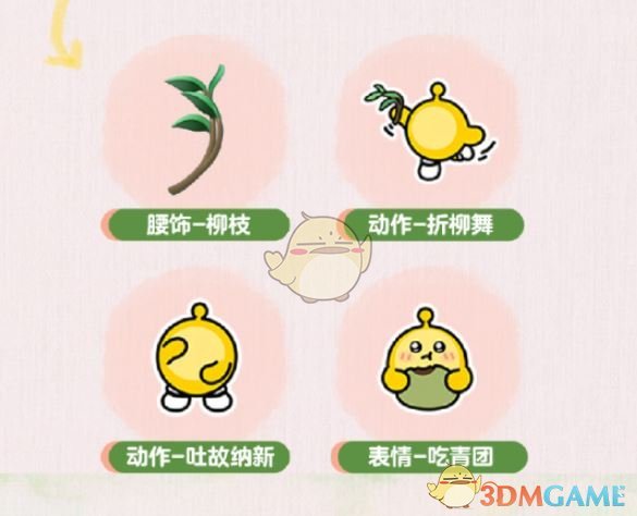 11、4月4日起,完成清明节活跃任务获得腰饰-柳枝、动作-折柳舞、动作-吐故纳新、表情-吃青团。