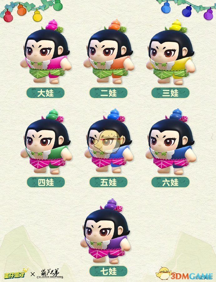 葫芦娃是国产动画片《葫芦兄弟》中的角色,一共七兄弟,他们正义且闪亮,虽然每个葫芦娃都长相一样,仅有穿着衣服的颜色不同,但每个葫芦娃都有不一样的本领,随着和蛋仔派对的联动也给大家带来了联动皮肤,将于春节期间上线,那么具体怎么获得呢?下面小编整理了《蛋仔派对》葫芦娃联动皮肤获取方法介绍,一起看看吧。