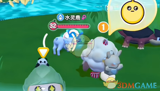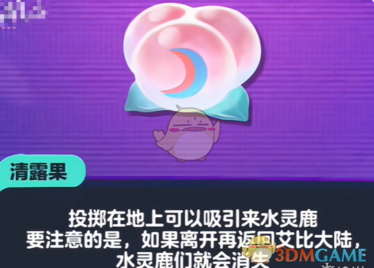 4、在水边扔出清露果,即可吸引水灵鹿。