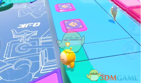 3、兜兜转转:在地上蓝圈的边缘起跳,红圈也是一样的,直线走右侧。