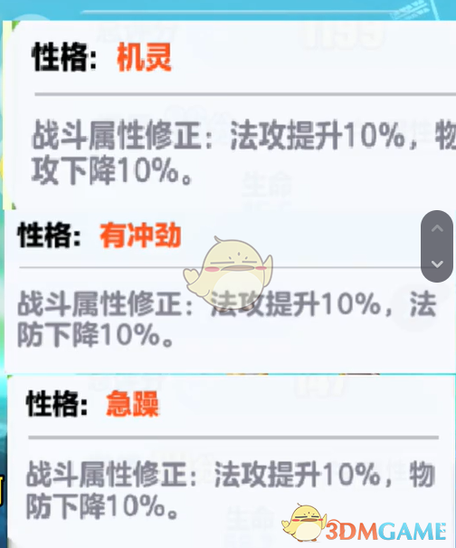 2、其次就是有冲劲和急躁。都是加法攻的。然后降法防和物防,这个也没办法,最好的就是机灵了。
