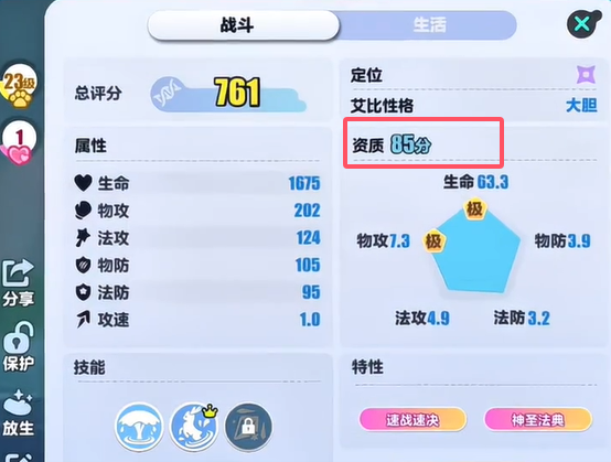 首先看资质评介,最好80价以上资质图,物攻一定要为极,其他能更好就更好。