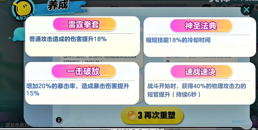 性格推荐培养大胆发冒险,蛮干这种可以提高物攻的性格,小鹿养成的养成特性成,也是基于物理攻击。推荐培养大胆爱冒险。