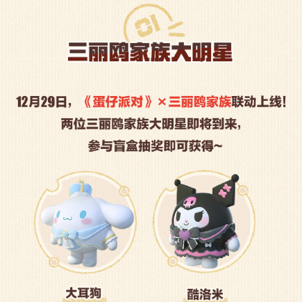 蛋仔派对三丽鸥联动什么时候上线?蛋仔派对即将和三丽鸥联名了,不少玩家也是非常期待,那么蛋仔派对三丽鸥联动什么时候出来呢,蛋仔派对三丽鸥联动外观又是什么样子的呢,下面我们一起了解看看吧。