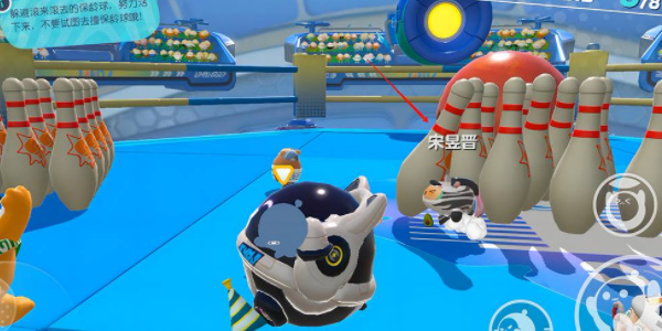 1、在这关中玩家可以利用场内道具躲避保龄球,如场内保龄瓶。