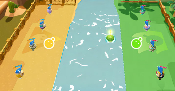 1、每场对局将有8名蛋仔分为两大阵营,在绿洲瀑布的两侧隔岸对战。每次成功击败敌方蛋仔将为己方阵营获取1点积分,在游戏时间结束时,积分更高的阵营方将获得胜利。如果两方积分相同则会进入加时赛,直到决出胜负。