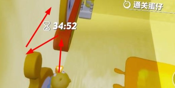1、进入关卡以后,现在地图上找到下图的弹射机关,然后落到对面的黄色头套顶部。