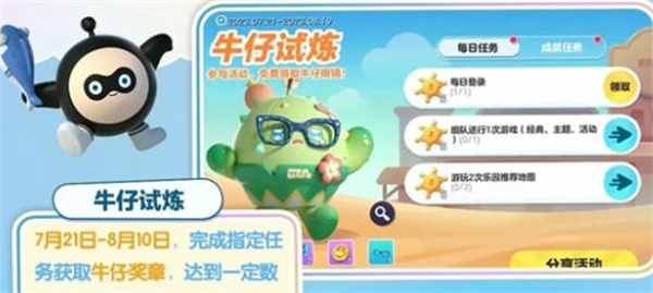 3:牛仔试炼,时间是7月21日开启,完成指定的任务可以获得牛仔奖章,累计九十个就可以召唤牛仔眼镜等奖励;