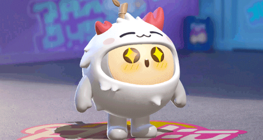1、不对称的红色小角,毛绒绒的雪白外观,配上淡粉腮红和萌趣小表情,真的是可爱到爆炸;