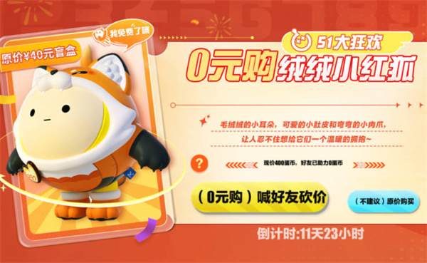 2:其次是全新外观【绒绒小红狐】的限时上线活动。从4月29日至5月11日,蛋仔们可以在商城页面购买这个可爱的外观,原价为400蛋币。但是,现在可以通过邀请好友进行砍价来获得免费的绒绒小红狐;