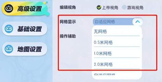 设计师们会不会觉得在设计地图时,组合太多操作的时候有点复杂?蛋仔们可以点击右侧“功能”图标上的小眼睛,就可以把妨碍操作的某一类组件隐藏掉。目标组件移动更为便利!另外,打开高级设置更改网格显示,还可选择适合自己的网格大小,就可以DIY出更为精密的地图!