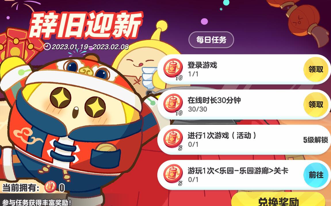 【辞旧迎新】活动上线,小小财星前来报到!完成每日任务获取爆竹,即可兑换虎头财星套装、精美配饰、呦呦外观、头像框和昵称框等丰厚奖励