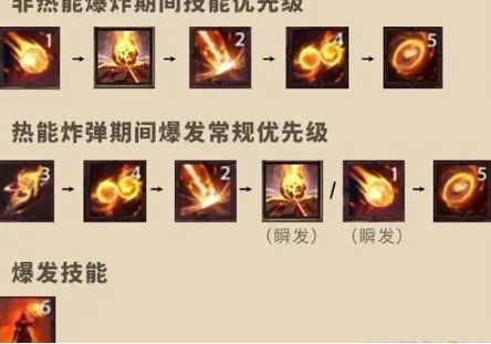1、输出顺序:烈焰增幅、炽热宝珠、热能炸弹、天火、灼热之刺。