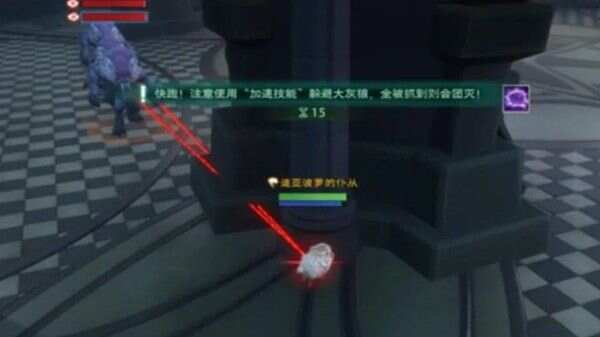 首领会在66%血量时转阶段,同时触发【狼抓小羊】机制,所有玩家变身小羊失去原本技能获得加移速技能,保持移动躲避大灰狼即可,可选择绕柱子或是绕半场,等到被靠近在使用加速技能哦!注意不要撞到锁定其他玩家的狼了,否则也是会被抓住的。时间结束即可继续打BOSS