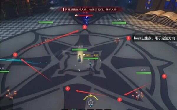 首领在读条后会出现扇形、圆圈技能范围预警,注意躲避即可,此技能一般面向会在之前被点名元素之牢的人面向,所以一定要及时解救之前被点名牢住的队友