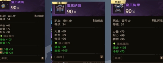 蛮王项链、蛮王护腿、蛮王胸甲三件紫装。