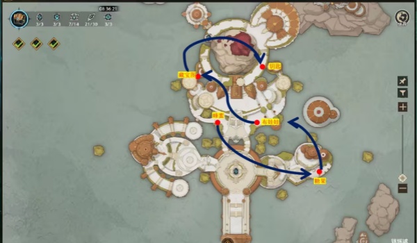 7、根据下图所示位置找到对应npc换取物品即可获得钥匙:蜂蜜→糖→布娃娃→藏宝图→钥匙。