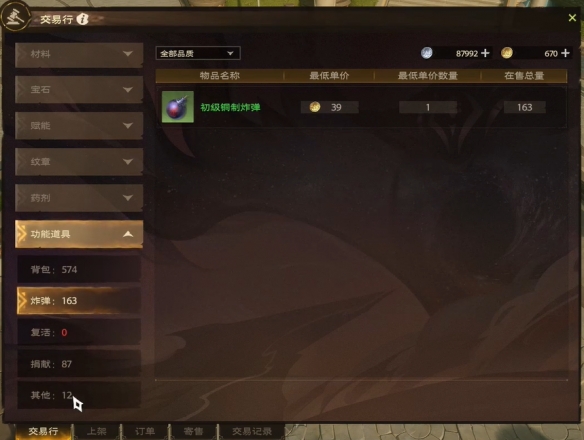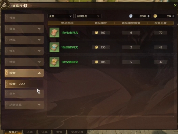 2、然后我们在交易行中找一个没有玩家上架的道具。