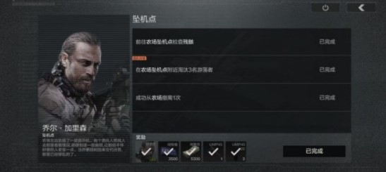 到达坠机点附近出出现一个检查的提示,点击检查就可以完成任务了,任务完成之后右上角会出现目标完成的提示。