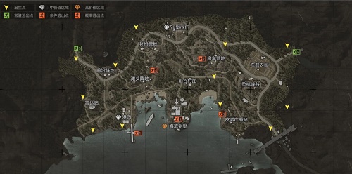 1.地图下方资源点较为密集,不过多为房区、海滩和公路,且各个资源点相距较近,枪声很容易传到周边,不免会引起别人的注意来劝架。