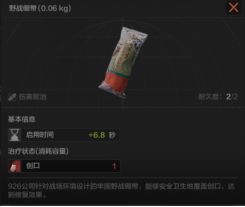 野战绷带的耐久度是2点,启用时长是6.8秒。