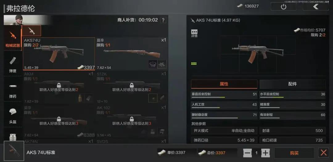 好感度到3级后,你还可以直接用柯恩币从他这里买到玩家们十分钟爱,使用频次极高的莫辛纳甘步枪,配套的子弹、3.5倍镜和消音器的换购也将同时解锁,助你成为跑狙大军中的一员。