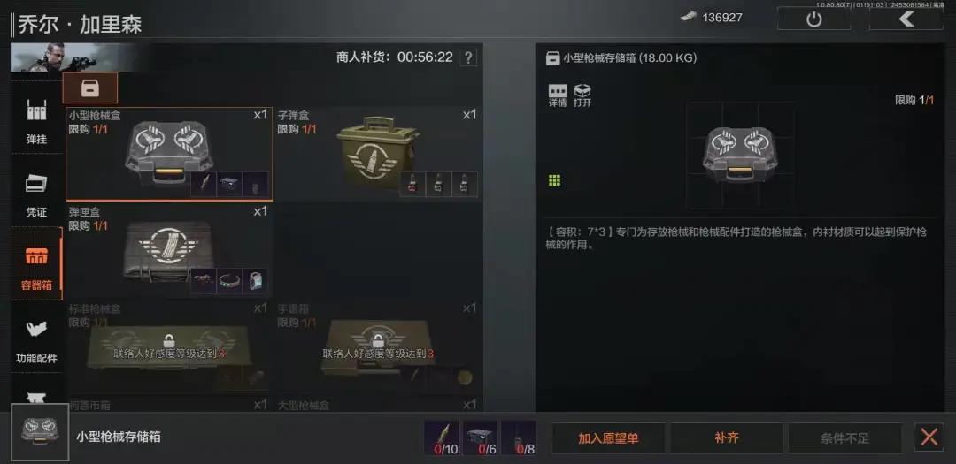 另外,乔尔还是暗区中唯一出售投掷物的联络人,如果市场上的投掷物价格太贵的话,不妨来找找乔尔。有了一定物资储备后,也记得看看乔尔这里的容器箱有没有可以兑换的,扩大仓库才能更快发家致富嘛。