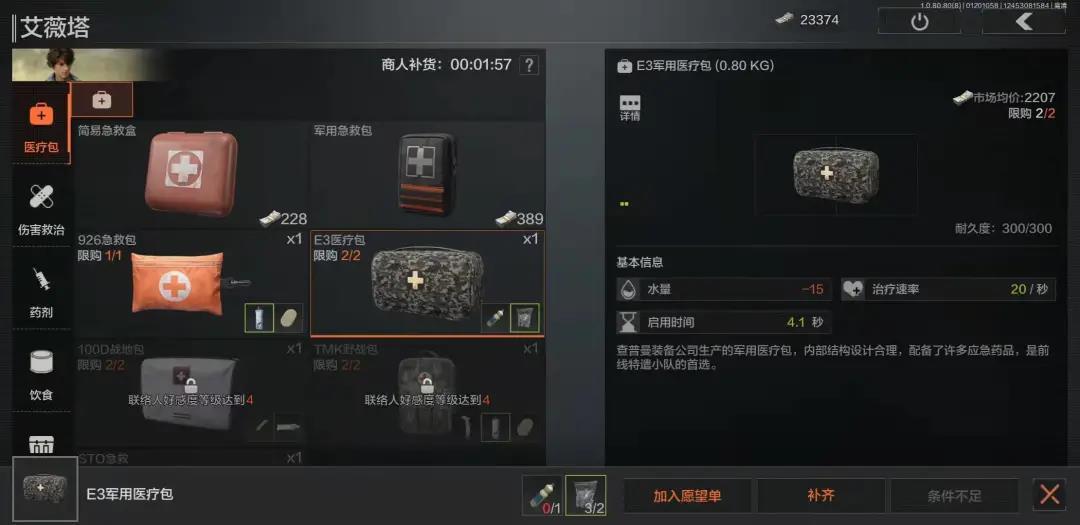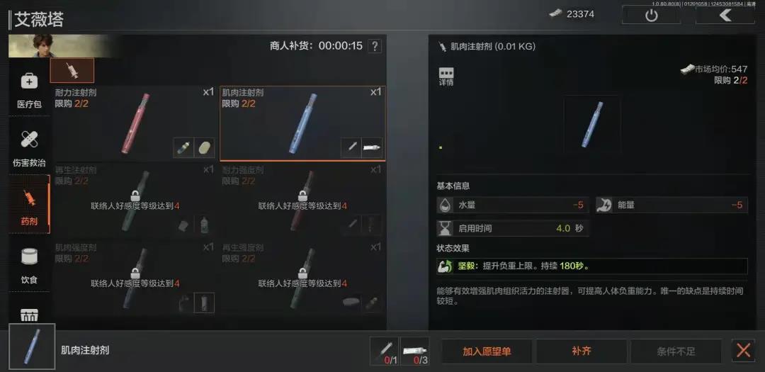 当大家深入了解游戏后,战斗越来越频繁,背包中的物品也越来越多时,对于各种增强剂的需求也会变大,这些药剂同样可以从艾薇塔处购得。相应的,艾薇塔也会出售可用于存放杂物、食物、医疗物品的容器箱,有了一定物资积累后可以考虑买一个。