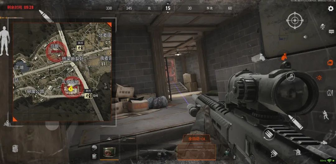 在汽车旅馆主客房走廊相邻的是贯穿免费保险箱两侧的浴室,这个区域内的架枪点不同于走廊两侧尽头狭小的常规架枪位,这里有诸多“阴暗”的角落,可利用转角及视野优势主动控制走廊两侧入口区域,也可藏匿其中出其不意。同时浴室内窗口视野开阔,可架住汽车旅馆北侧入口,但这里如果被敌方小队从走廊两侧协同进攻,基本无路可退,所以在选择这个点位蹲伏时首要判断敌方人数,分析声纹信息调整策略。
