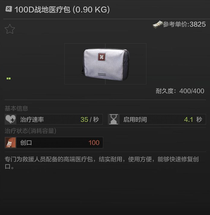 2、除了100D战地医疗包外,STO急救套装和TMK野战医疗包都可以治疗创口,需要额外消耗的耐久值也同样是100点。