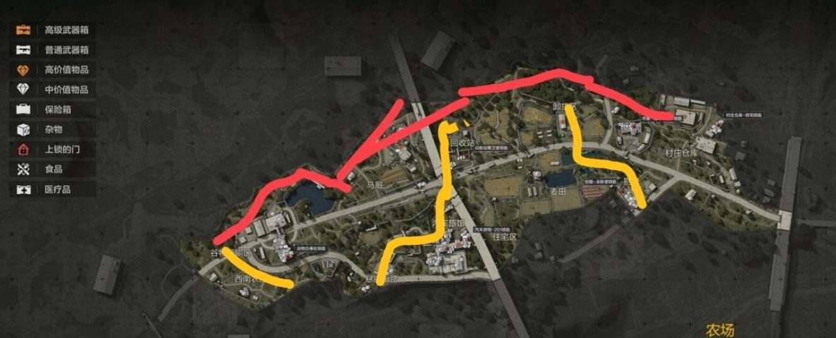 2、跑商的路线可以参考下图所示,建议组件四人小队一起进行跑商避免其他玩家来干扰,路线尽量选择比较偏离的出生点,可以减少遇到其他人的概率;