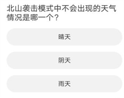 7.哪个天气不会在北山袭击模式出现?