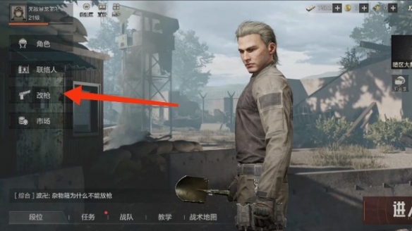 1、首先我们需要打开游戏的主界面,在左侧会看到一个改枪的选项。