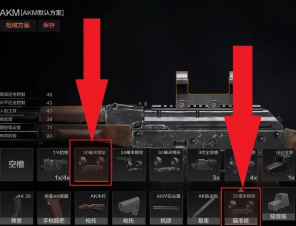 2、在瞄准镜的选项里面可以看得到30毫米镜架进行选择。