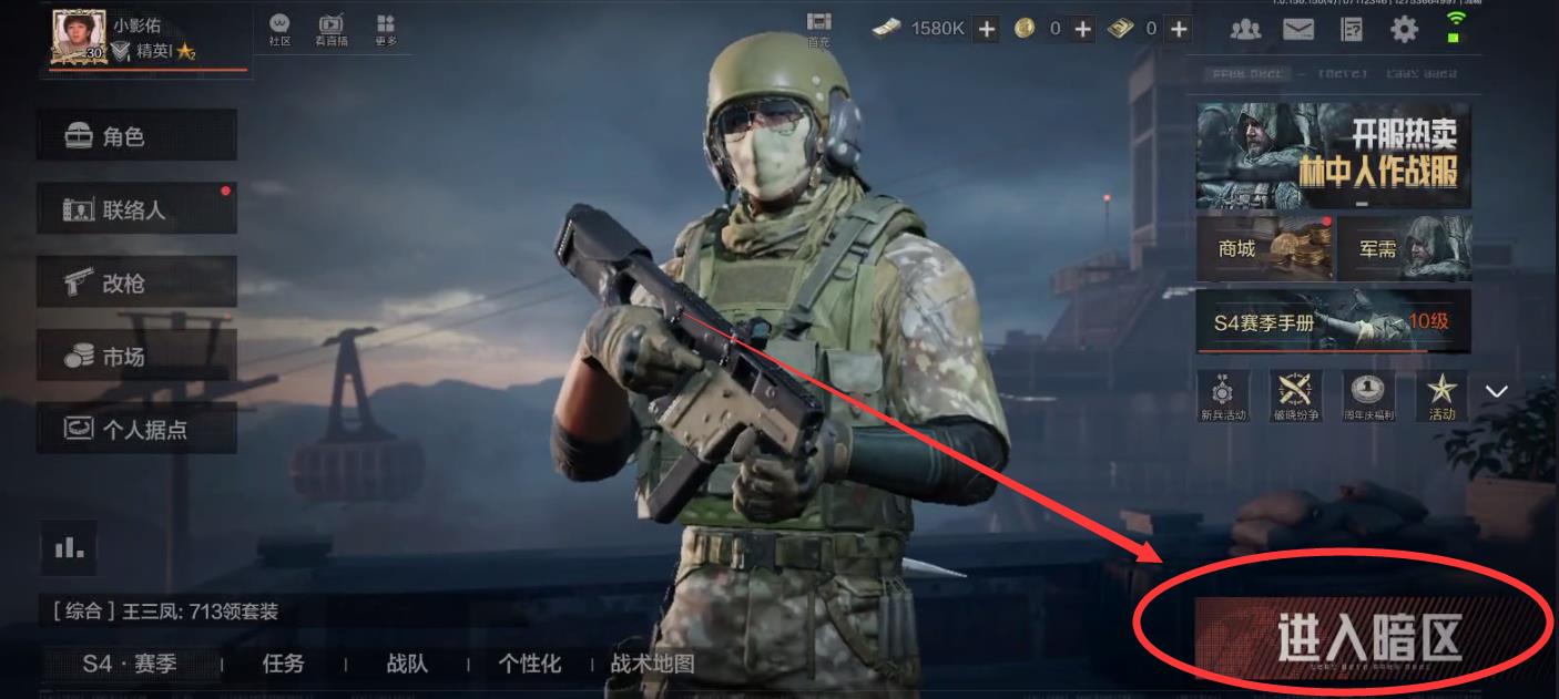 1、进入游戏后,在主界面点击右下角的【进入暗区】;