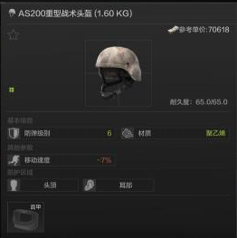 头盔推荐AS200重型战术头盔,材质是聚乙烯,硬度很高。