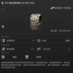 防弹衣推荐KN复合防弹衣,陶瓷材质防穿透能力顶级,虽然只有胸部和上腹部的防御,但耐久很高,这款防弹衣基本全地图都适用。