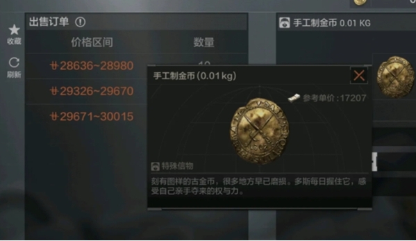 由于市场上最多可上架五种物品,所以我们就得优先上架任务物品之外的、市场需求较大且价格相对稳定的物品,如紫色和金色品质的物品。